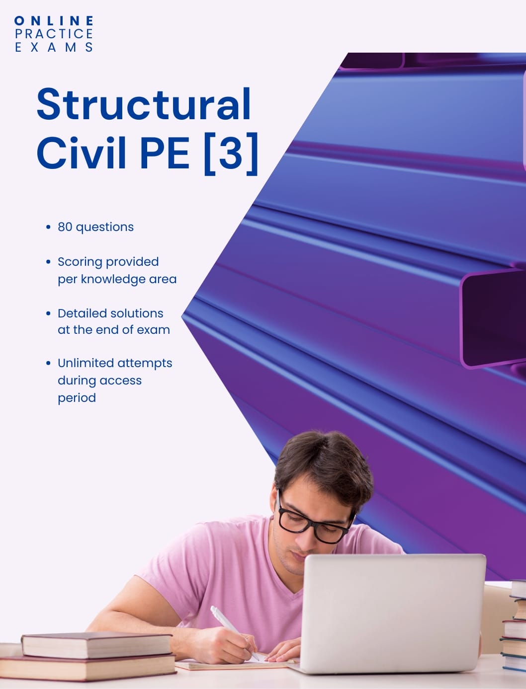 This online practice exam is designed to help you train, test, and evaluate your readiness for the NCEES Structural Civil PE Exam while you also learn the conceptual background. This exam contains 80 original, non-AI-generated questions, developed and reviewed by experienced engineers, that closely reflect the coverage, style, and difficulty of the actual Civil PE Exam while also serving as an effective learning tool.